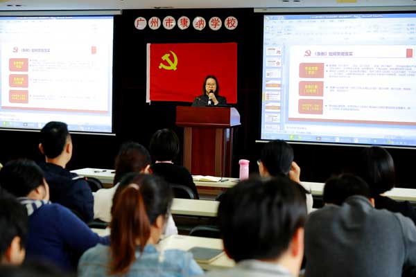 2019年11月19日下午,广州市康纳学校党支部组织学习《中国共产党问责条例》(2019年修订实施,下简称《条例》)专题党课,由钟卜金校长主讲,31名党员干部参加了学习。