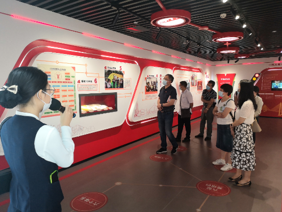 在讲解员的带领下,党员同志们沿着“羊角导向牌”,乘“红色专列”,依次经过“羊角信号灯”“羊角列车头”“羊角列车厢”“羊角屏蔽门”“羊角体验站”等一系列主题展览区。党员同志们切身体验党建与业务发展双融合、双促进的生动案例,深入解读党建品牌的丰富内涵。
