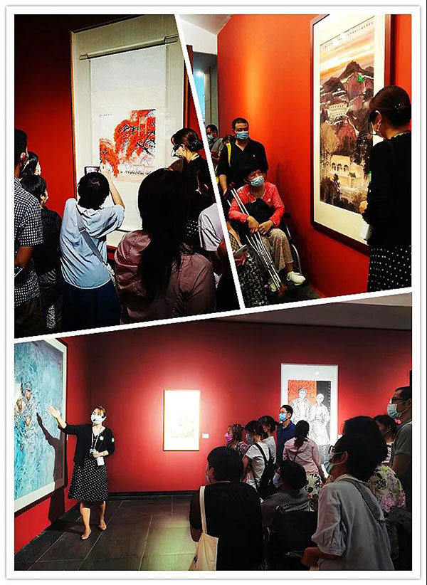 参观过程中,残疾人艺术家们认真聆听讲解员讲解,仔细观看国画、油画、版画、雕塑,仿佛置身那段激情燃烧的峥嵘岁月,深受红色艺术作品的熏陶。