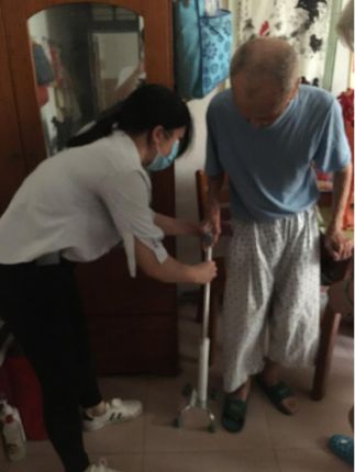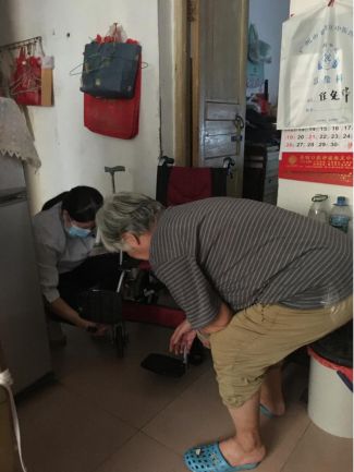 此次慰问的孤寡老人任伯已93岁高龄,行动不便,身边仅有一名70多岁的街坊邻居不时照料。慰问的同志向老人送上月饼、水果等慰问品,表达了节日的祝福,并发挥工作特长为其进行轮椅和拐杖使用回访指导。此前,中心党支部在“我为群众办实事”实践活动部署初期,结合中心实际与单位所在地社区党组织积极沟通对接,设立“助老助残”项目,为社区独居、孤寡、困难老人及残疾人提供辅助器具服务及生活帮助,并为任伯及裕升养老院的老人们作了身体评估,捐赠了一批轮椅、助行器等辅助器具。出于养老院疫情防控管理规定,本次慰问未能覆盖养老院的老人。