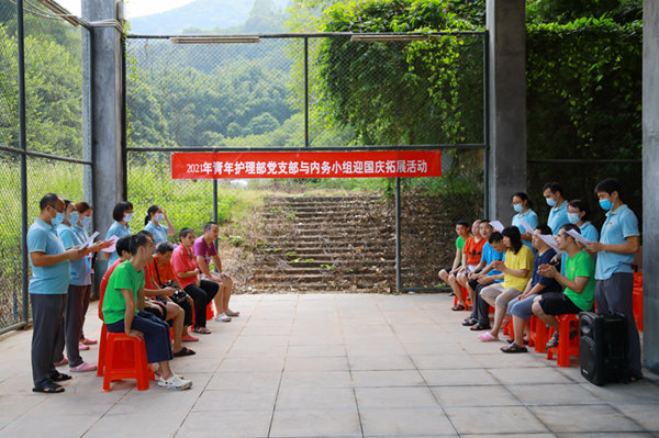 2021年9月28日,在新中国成立72周年华诞即将到来之际,广州市残疾人安养院青年护理部党支部12名党员和20名部门内务小组院友在职训工场开展了一场主题为“红心向党迎国庆,团队熔炼塑真我”的主题党日活动。