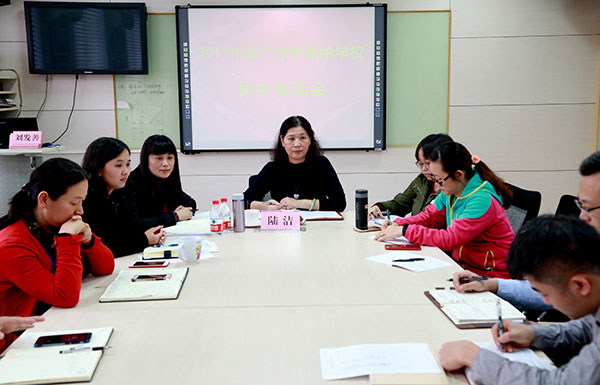 2018年1月19日,广州市康纳学校举行学校领导班子2017年度民主生活会。市残联副巡视员陆洁同志、机关党委刘发善同志参加会议?;嵋橛裳5持Р渴榧?、校长吴雪媛主持。