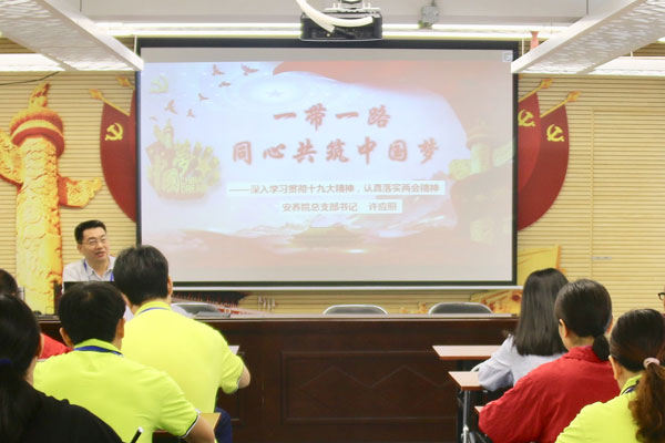 为深入学习贯彻习近平新时代中国特色社会主义思想和党的十九大精神,2018年4月27日上午,广州市残疾人安养院党总支组织全体党员开展了“一带一路 同心共筑中国梦”专题党课活动,党总支书记许应照主讲本次党课。