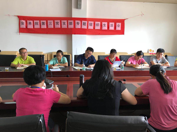 2018年7月5日下午,广州市残疾人安养院第三党支部在康智养护院会议室召开“七一”专题组织生活会,会议由第三党支部书记唐红主持,院党总支书记许应照、第三党支部全体党员参加了本次生活会。