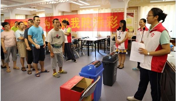 为深入学习贯彻落实党的十九大精神和习近平新时代中国特色社会主义思想,践行“绿水青山就是金山银山”的发展理念,增强职工与院友的环境?;ひ馐?,培养职工与院友垃圾分类投放的良好习惯,2018年8月9日上午,广州市残疾人安养院党总支开展了主题为“不忘初心、牢记使命——垃圾分类,从我做起,共建美好家园”的志愿宣传活动。