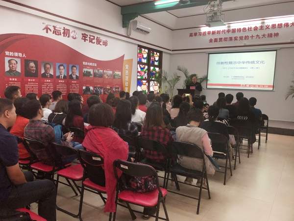 大家首先瞻仰了农讲所旧址,参观了《广州农民运动讲习所陈列》展览。接着,安养院党总支书记许应照同志带领党员们重读一段党章,深入领会习近平新时代中国特色社会主义思想的精神实质。随后,大家观看专题片《习近平总书记在参加第十三届全国人民代表大会第一次全体会议广东代表团审议时重要讲话》,进一步学习习近平总书记对广东“四个走在全国前列”的要求,接着聆听了广州博物馆馆长李民涌主讲的题为《创新性展示中华传统文化》专题宣讲。宣讲结束后,大家移步到农讲所大成殿前,重温入党誓词。