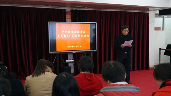 根据《中共广州康复实验学校支部委员会2019年度主题党日活动方案》(穗康实验支部【2018】2号)的工作安排,学校党支部于1月3日举办主题党日活动。