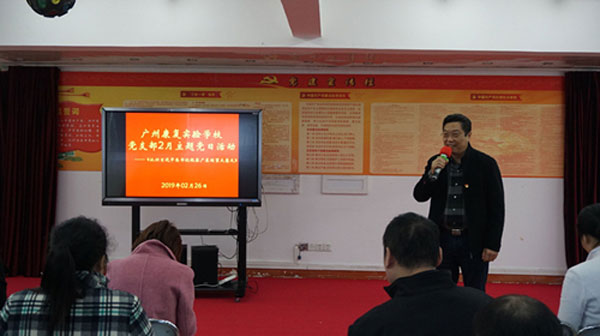 为了认真落实抓好主题党日活动制度,切实落实“三会一课”制度,2019年2月26日,广州康复实验学校党支部举行了以党课为内容的2月份主题党日活动。