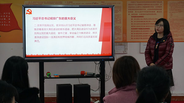 本次主题党日活动由学校党支部党员赵剑芳同志讲题为“认识习近平总书记视察广东的重大意义”的主题党课。主题党课围绕习近平总书记视察广东的足迹和视察广东的重大意义展开,通过此次主题党课,党员同志们在回顾中深刻体会到了改革开放带给我们广东人民的重大变化,同时,也鼓励着党员同志们坚持改革开放的坚定立场,充分认识新形势下改革开放的时代性、体系性、全局性问题,在更高起点、更高层次、更高目标上推进改革开放。通过学习,党员同志们也领悟到改革开放与残疾人特殊教育事业的紧密联系。学校在改革开放前沿阵地,学校将深入贯彻习近平新时代社会主义思想,践行习近平总书记视察广东重要讲话精神,为残疾儿童提供更好的特殊教育服务。
