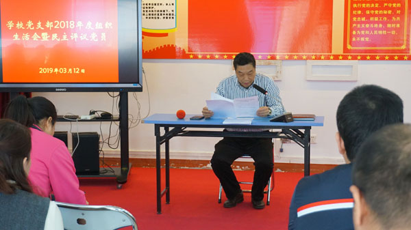 阮?;榧谴硌5持Р肯蛉宓吃蓖就ū搜5持Р?018年度工作情况、2017年度组织生活会查摆问题整改落实情况。学校党支部在深入听取党员意见和建议基础上,列出了2018年度组织生活会查摆问题和整改清单,并在本次大会上向党员同志通报,由全体党员在2019年工作中全面监督学校党支部落实各项整改措施。