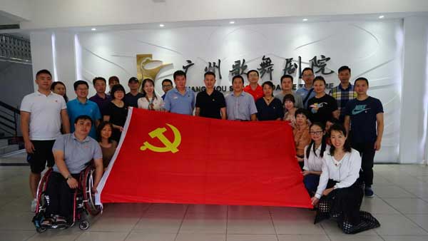 中心一行到达广州歌舞剧院后,先参观了广州歌舞剧院展览室。并在排练场观看大型民族舞剧《醒·狮》演员的日常训练。最后双方在会议室举行了座谈会?;嵘?,广州歌舞剧院党支部书记史前进向我中心一行介绍广州歌舞剧院近年来党务建设、剧目创作、惠民演出、人才建设等相关情况,中心党支部书记陈景辉也向广州歌舞剧院党员介绍了中心的党务建设,残疾人文化、体育发展现状。最后双方党支部举行了结对共建签约仪式。