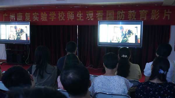 为深入学习贯彻习近平新时代中国特色社会主义思想和习近平强军思想,落实习近平总书记关于加强全民国防教育的重要指示精神,在全校师生中营造“热爱家乡、保卫祖国、勇于奉献、寸土不让”国防国土意识的浓厚氛围,以实际行动迎接中华人民共和国建国70周年,广州康复实验学校党支部于2019年6月12日和14日分批组织全校师生观看优秀国防教育影片《守边人》。