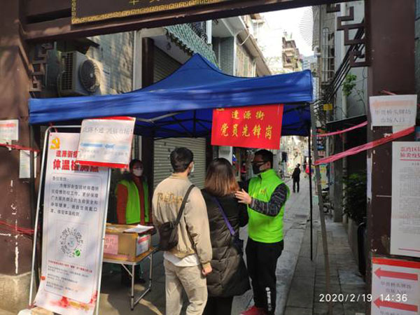 基层社区防控是疫情防控中的重要一环。党员们回到社区后,协助社区开展各类防控服务:对居民进行电话疫情的排查工作、在街道沿线的店铺和居民楼道里张贴防控疫情的宣传资料、加强对社区居民出入登记管理、为进入社区居民测量体温等,确保落实联防联控的措施,保障社区居民的安全。