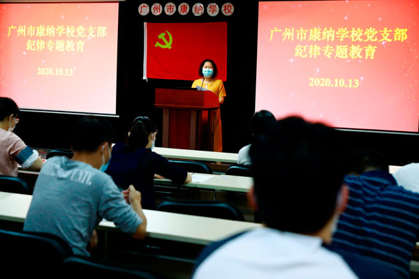 广州市康纳学校党支部组织“厉行节约·反对浪费”专题党课