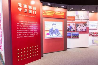展览共分为“党旗飘扬·守卫国门”、“逆行冲锋,义无反顾”、“暖心接力,一路同行”,“抗疫群英,典型风采”四个板块,介绍了我市入境人员服务组全体党员干部响应党的号召,挺身而出、冲锋在前,迎难而上,与时间赛跑与病魔较量守卫国门安全的事迹。统计数据显示,广州白云国际机场2020年旅客吞吐量达到4376.8万人次,共承接入境航班1840班次,位居全球各大机场的首位。根据防疫工作的需要,入境人员服务组投入人力超过90万人次,在各方齐心协力、共同抗击疫情的努力之下,服务组在全力服务入境人员的同时实现零感染,为广州市积极复工复产、恢复信心士气,最终在疫情考验下逆势增长、取得佳绩打下了良好的基础。