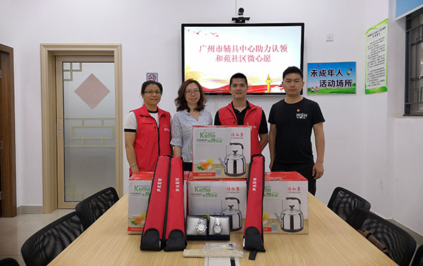 群众利益无小事,一枝一叶总关情。2021年4月9日,“您的心愿、我的志愿”——广州市荔湾区党组织、党员为群众办实事“双微”行动在广州文化公园举行启动仪式。辅具中心党支部积极响应,秉承尽力而为、务求实效为原则,发动9名在职党员为困难群众和特殊群体提供支援,帮助实现微心愿,传递党的关怀及温暖,共同认领荔湾区西村街和苑社区10名视障群众微心愿。大家捐款1230元购置了报警水壶、电子声光盲杖、报时表及盲人写字板等一批辅助器具,赠送给群众。