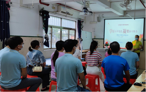 为庆祝中国共产党成立100周年,回顾党的奋斗历史,讴歌党的光辉业绩,继承和发扬党的光荣传统和优良作风,2021年8月11日上午,广州市残疾人安养院团总支开展了庆祝建党100周年主题团日活动,院团总支书记丁文佳讲授“学好百年党史 凝聚奋斗伟力”主题团课,安养院全体团员参加了此次活动。