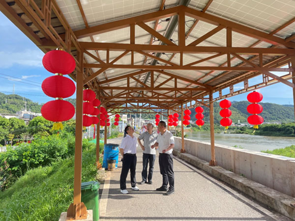接着,参观了由西阳镇风眠绿道建设改造而来的“光伏长廊”,与我会驻镇帮扶干部林志彬同志就应用太阳能光伏产业推进乡村振兴帮扶的情况进行深入交流。