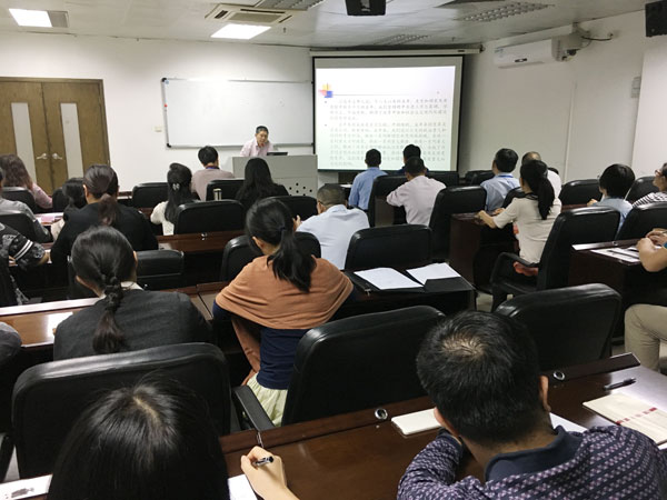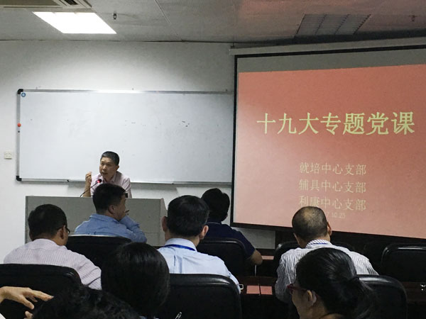 为深入学习十九大精神,10月23日下午,就培中心党支部、辅具中心党支部联合邀请中共广州市委党校梁宏教授对十九大报告内容进行深入的讲解和辅导,二个中心的全体党员以及利康中心支部的党员一起参加学习。