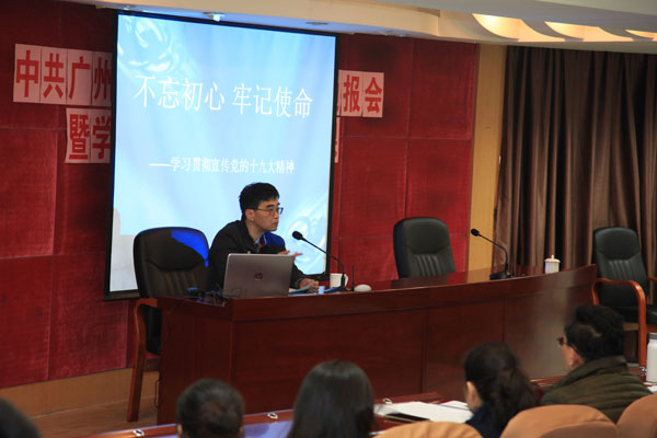 随后,陈学军书记以“不忘初心、牢记使命——学习宣传党的十九大精神”为主题讲授专题党课。学军书记从过去五年的工作和历史性变革、收获,进入新时代我国发展新的历史方位、新时代中国共产党的历史使命,十九大报告提出的八个“明确”、十四个“坚持”以及提高保障和改善民生水平加强和创新社会治理等方面阐述了十九大精神的精髓和核心内容。最后,学军书记结合十九大报告有关民生工作与残疾人工作的论断提出要求,希望残联的党员干部要以习近平新时代中国特色社会主义思想为指引,以贯彻党的十九大精神为动力,抓好残联群团改革、业务转型、特色发展、党的建设,推动党的十九大精神落实落地,奋力开创市残联各项工作的新局面。