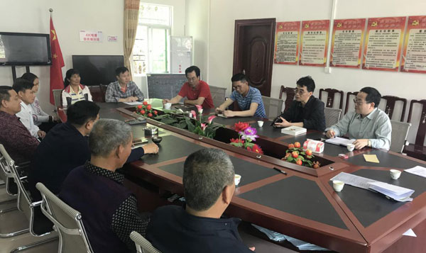陈学军理事长首先在大玉村委主持召开座谈会,一是传达学习习近平总书记在参加十三届全国人大一次会议广东代表团审议时重要讲话精神和全国“两会”精神,指出要深刻领会精神实质,强化责任担当,结合当前大玉村精准扶贫工作抓好贯彻落实。二是开展《习近平谈治国理政》第二卷宣讲活动,对第二卷总体情况、治国理政总体框架、中国未来的发展理念等内容进行介绍,深入解读了习近平在治国理政新的实践中发表的一系列重要论述,并与现场党员干部就“如何实现乡村振兴”等工作进行交流互动。三是认真听取近期扶贫工作情况,要求驻村工作队和村委要共同形成合力,立足实际、抓住重点、精准施策,务实高效落实扶贫项目。