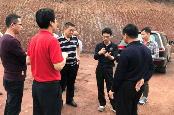 接着,陈学军理事长一行偕同江西省广东商会会长黄树辉实地考察大玉村产业现状,到大玉养牛场项目现场,察看了项目规划和土地平整情况?;苹岢ず驼虼辶斓脊餐烫覆蛋锓鱿钅可柘耄⑻岢隽顺醪胶献饕庀?。陈学军理事长指出要加强双方资源整合,加快项目推进,落实省市有关进一步加大产业帮扶力度的工作要求,探索出产业合作模式,实现扶贫工作从“输血”向“造血”转变。