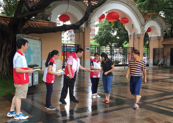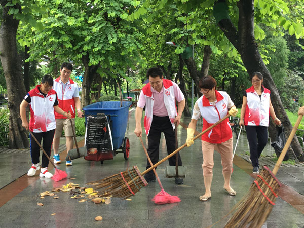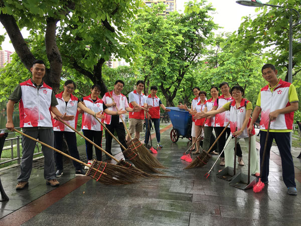 为深入贯彻落实习近平新时代中国特色社会主义思想和党的十九大精神,弘扬 “奉献、互助、友爱、进步” 的志愿服务精神,进一步营造“践行垃圾分类,共建美好家园”的良好社会风尚,2018年6月23日上午,在院总支部书记许应照同志的带领下,广州市残疾人安养院党总支一行共14位党员同志在越秀区东湖公园开展了“广州美景人人爱,垃圾清洁靠大家” 主题志愿服务活动。