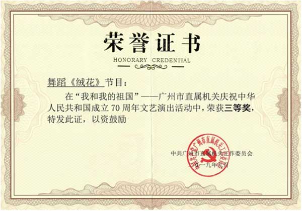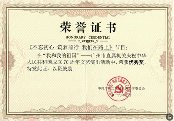 广州市残联荣获“我和我的祖国”——广州市直机关庆祝中华人民共和国成立70周年文艺演出三等奖