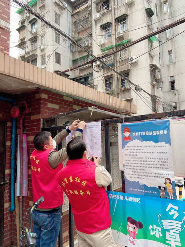 康复中心党支部积极组织党员以及职工参加社区疫情防控志愿工作,包括在社区宣传栏、大院门前等显著位置处,粘贴政府通告做好政策宣传;上门询问住户情况,挨家挨户开展防疫知识宣传;对居民进行电话疫情的排查工作;面对大量人员即将返岗、返城的严峻形势,加强管控力度,做好体温检测,把好社区的关口。