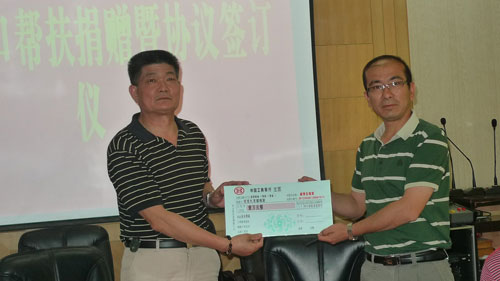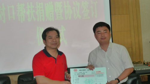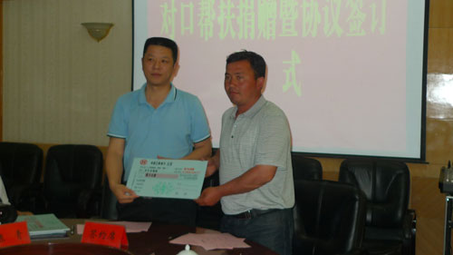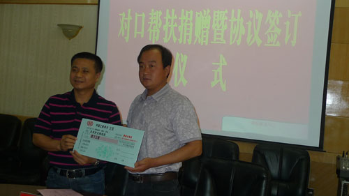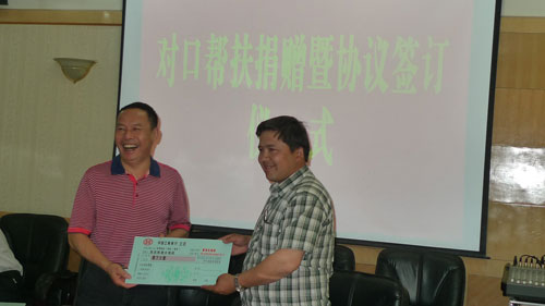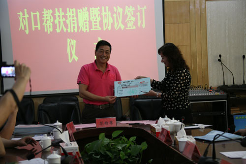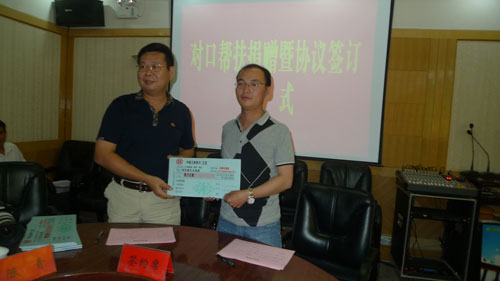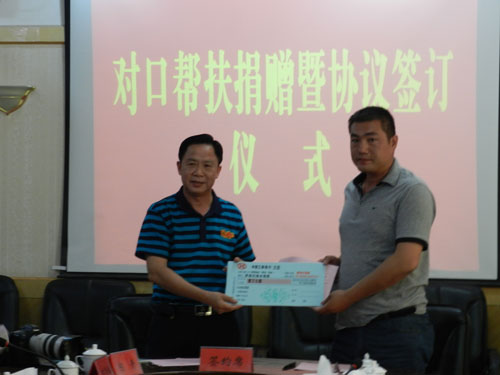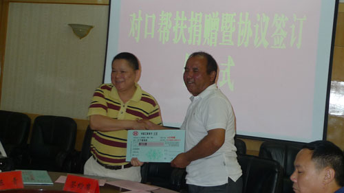 3日上午,考察组一行在疏附县委会议室,听取了疏附县残疾人工作情况汇报,包括所属的12个乡镇残联的残疾人详细情况的介绍,就下一步的帮扶措施和计划进行了探讨,来自疏附12个乡镇的残联干部与考察团成员进行了热烈友好的交流。我市十二个区县残联理事长与疏附县十二个乡镇签订了帮扶对接协议,并向各个对接帮扶的乡镇残联捐赠了购买电脑、办公桌及摩托车等办公用品的资金,主要目的是改善各乡镇残联的工作环境。