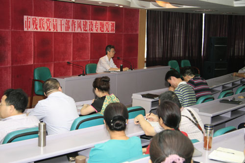 按照2014年市残联机关党建工作的安排,5月15日下午,市残联机关党委在18楼一号会议室举办“党员干部作风建设专题党课”,由市残联副主席、巡视员梁左宜同志授课,主题是“强化责任意识,加强作风建设”。残联机关全体干部、直属事业单位中层以上干部等100人参加学习。