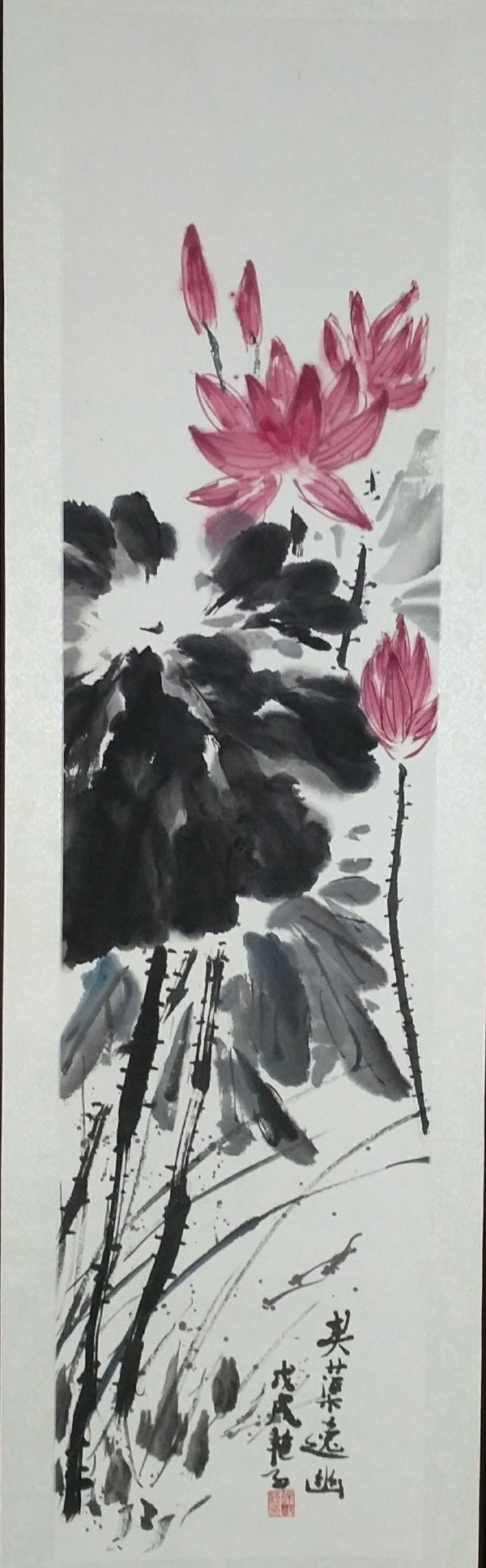 国画作品《芙蕖逸幽》寓意:芙蕖乃荷花的别名,荷花是圣洁的代表,更是佛教神圣净洁的象征。荷花出尘离染,清洁无瑕,故而中国人民和广大佛教信秆都以荷花“出淤泥而不染,濯清涟而不妖”的高尚品质作为激励自已洁身自好的座右铭。荷花是友谊的象征和使者。中国古代民间就有春天折梅赠远,秋天采莲怀人的传统。一幅《芙蕖逸幽》祝愿祖国繁荣昌盛,中国人民和平共创新时代,走在前!