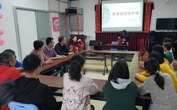 广州市康宁农场工会开展新春插花培训活动 作者:广州市康宁农场 | 来源:广州市康宁农场 | 发布时间:2021-02-09 浏览次数: 次 春节将至,为了弘扬中华传统文化,丰富职工的业余生活,农场工会于2021年2月9日开展了以“新春插花增年味”为主题的插花培训活动。 活动现场,园艺老师通过理论讲解介绍了插花艺术的基本知识、插花造型及花的品种等内容,并在实际操作环节中,让职工们通过适当的手法去修剪和装饰成一个个美丽的贺年盆花。 本次活动让职工们在学习插花创作过程中陶冶情操,提升康复培训技能,传递乐享生活的正能量,喜迎新春佳节。 分享到: 【打印正文】