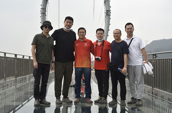最后,大家来到了离地垂直高度达500米天门悬廊玻璃桥,行走在天门悬廊上,震撼的高空落差,给大家带来了“步步惊心”的精彩体验。有的员工畏高,走到桥中间就开始腿软和尖叫了,最终在其他同事的支持和帮扶之下,克服了恐惧的心理,成功绕桥环行,充分体现了团队协作精神。