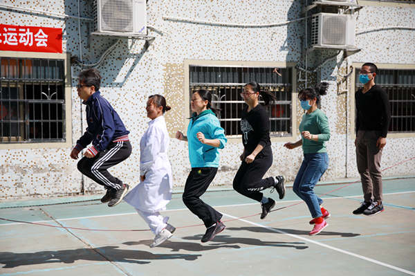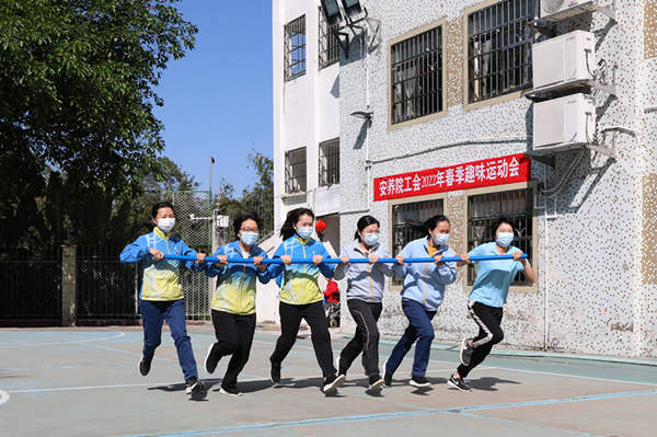 时值“三八”国际妇女节,活动开始前,院工会主席廖惠环做了动员讲话并祝贺女职工们节日快乐。本次活动设有3个集体项目,以部门为单位分组进行比赛。在“竞走同舟共济”项目中,各组队员在道具固定脚的情况下,异口同声喊着整齐的节奏齐步并进;在“快跑万众一心”项目中,各组队员在道具固定手的情况下,仍然万众一心朝着终点奔跑;“团结一条心”是团体跳绳项目,要求队员们手脚并用、默契配合。