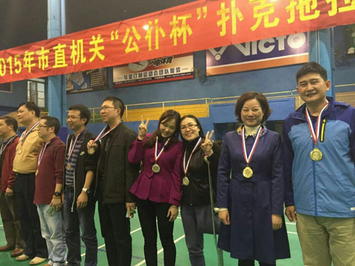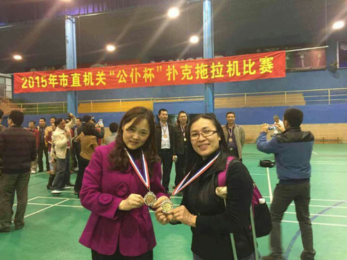 2015年4月11日-12日,由陈瑜聪、郭植萍、陈世会、舒福珍、骆惠华、沈杰文、赵伟、张海峰八名优秀选手组成的市残联扑克牌代表队,参加市直机关2015年“公仆杯”扑克拖拉机比赛。经过两天的激烈角逐,我会获得男女混合团体赛第九名,来自广州康复实验学校的陈世会、舒福珍选手荣获男女混合单项赛亚军。