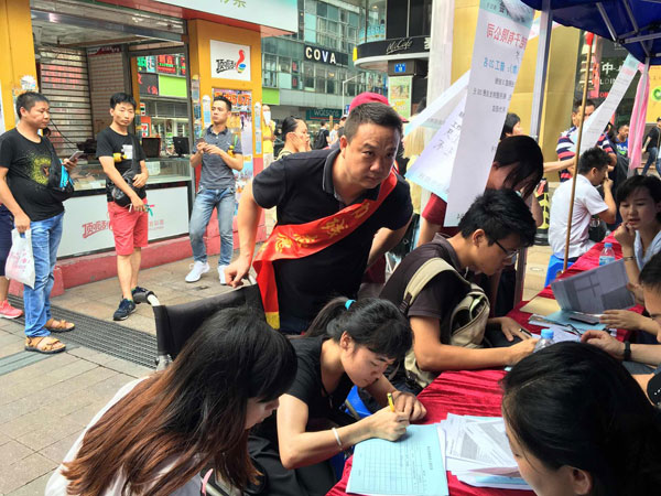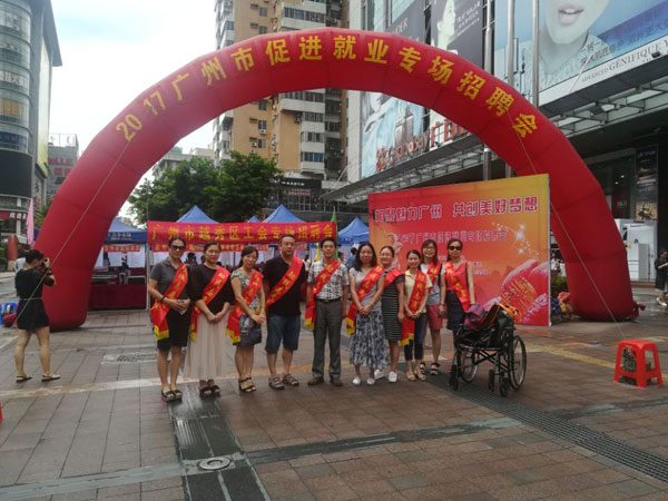2017年7月19日下午,广州市残疾人就业培训服务中心的党员们在“2017广州市促进就业专场招聘会”提供了主题为“我是共产党员,我志愿”的党建志愿服务。