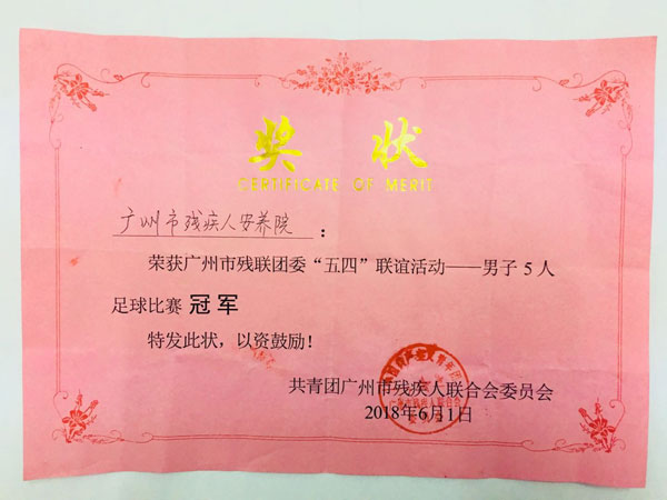 市残疾人安养院荣获“市残联团委‘五四’联谊活动——男子5人足球比赛”冠军