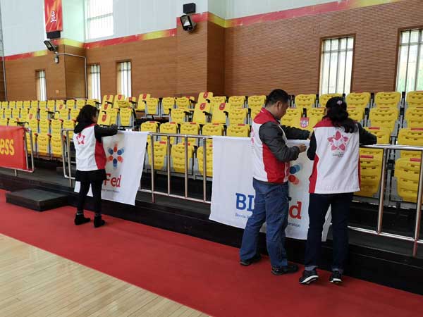 3月23—24日,市残联机关党委组织党员志愿者利用休息日为赛事提供“赛前训练司线员”、挂会旗、清理比赛场馆等志愿服务,为赛事顺利有序进行出一份力。