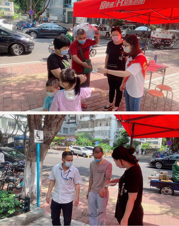 当天,叶欢、陈茹冰、谢简莉三名教师团员分别参加了各自社区的志愿服务活动,协助疫情防控岗点工作人员测量居民体温、登记外地回穗人员信息,为疫情防控工作贡献自己的一份力量。