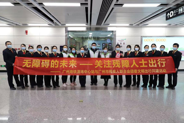为促进扶残助残良好社会风尚,给予残障人士无障碍出行关爱,2020年12月17日上午,广州市残疾人联合会团委与广州地铁清?中心站携手共同举办了“无障碍的未来——关爱残障人士出行”主题公益活动。