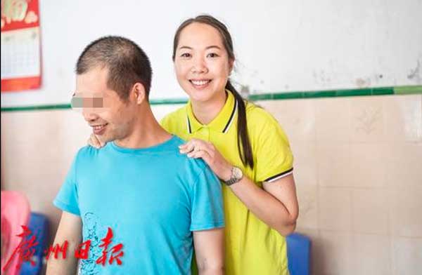 有一天,李颖接班没多久,民仔忽然呕吐,全身都是呕吐物?!拔以诎锼灰挛锸?,他忽然全身冒冷汗,紧跟着大叫我名字,我们两人就一起倒在地上?!崩钣彼?,倒下时她只想到不让民仔受伤,便用身体垫着他,以免他摔伤,再顶着酸臭和疼痛拿来轮椅,将他及时送到医疗室治疗。没想到,从此以后他一听到李颖的声音便过来拉着她的手,对着她笑眯眯,这让李颖感动不已。