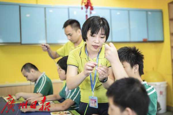 谭清云,她连续五年被评为安养院年度优秀员工,2017年还被评为“广东省特殊教育优秀老师”。