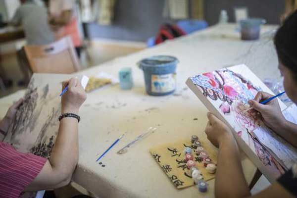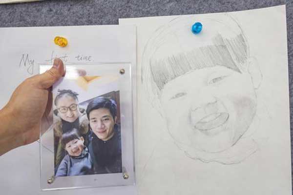 场友阿玉(化名)原本是一个美术老师,初来农场时她的情绪总是很低落,但她在农场书画老师孙波的鼓励和支持下,通过艺术疗法进行康复,不仅病情得到了改善,作品还在市区两级残疾人书画比赛中获了奖。这几天,康宁农场的画室里,正在进行阿玉的“个人画展”。孙波指着阿玉早期的一幅作品说,画中的小女孩郁郁寡欢,但后期的作品人物则露出了微笑,这反映出阿玉心境有改善。