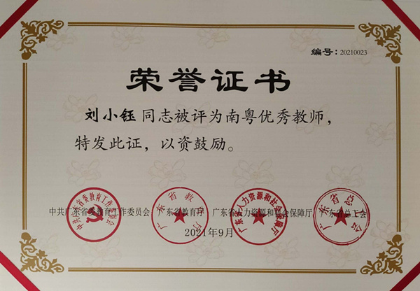 2021年9月,广州市残疾人安养院附属学校教师刘小钰经省教育系统评选为“南粤优秀教师”。