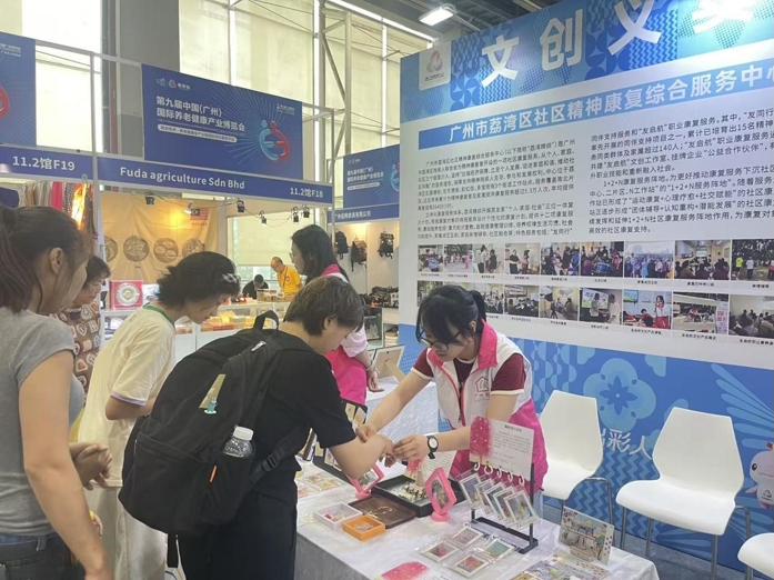 第九届广州老博会残特奥会氛围营造活动于8月22日至24日在中国进出口商品交易会展馆B区成功举办。荔湾区社区精神综合康复服务中心(以下简称“荔湾精综”)积极参与“文创义卖区”展示,集中呈现精综康复者创作的多种精美手工文创作品,既彰显了精神康复者的艺术潜能,也向社会各界献上了一份独具“心”意的礼物,生动诠释了残特奥会“平等、融合、共享”的理念。