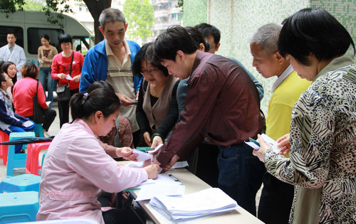 工作人员在登记资料