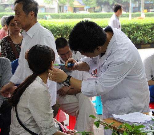 工作人员在现场做耳膜