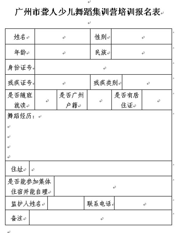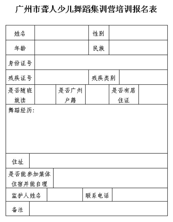 附件:《广州市聋人少儿舞蹈集训营报名表》