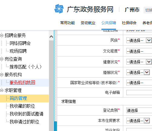 (2)步骤: 【填写基本信息】→【求职信息】→【简历信息】→【提交】→【后台审核通过】(红色*号为必填项)